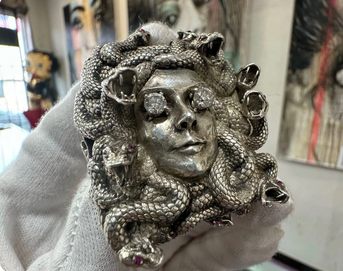 Richard Mille RM11FM Diamond Watch $250,000.00 22k Diamond Urn Pendant Saudi Style $50,000.00 Silver 12oz Diamond Medusa Ring $10,000.00 10k White Gold Enamel Last Supper Grillz Ornament $8,000.00 10k White Gold Diamond Name Pendant $4,500.00 PRE Record Label Pendant $15,000.00 Silver & Diamond McLaren Hood Ornament $25,000.00 Medusa 14k Gold Diamond Ring $7,000.00 Talent Agency Pendant Silver $750.00 Mercedes Benz Chrome Hearts Solid Sterling Silver Hood Ornament $5,000.00 10k Yellow Gold Custom Enamel Initial Pendant $1,600.00 14k Rose Gold 3ct Natural Ring $240,000.00